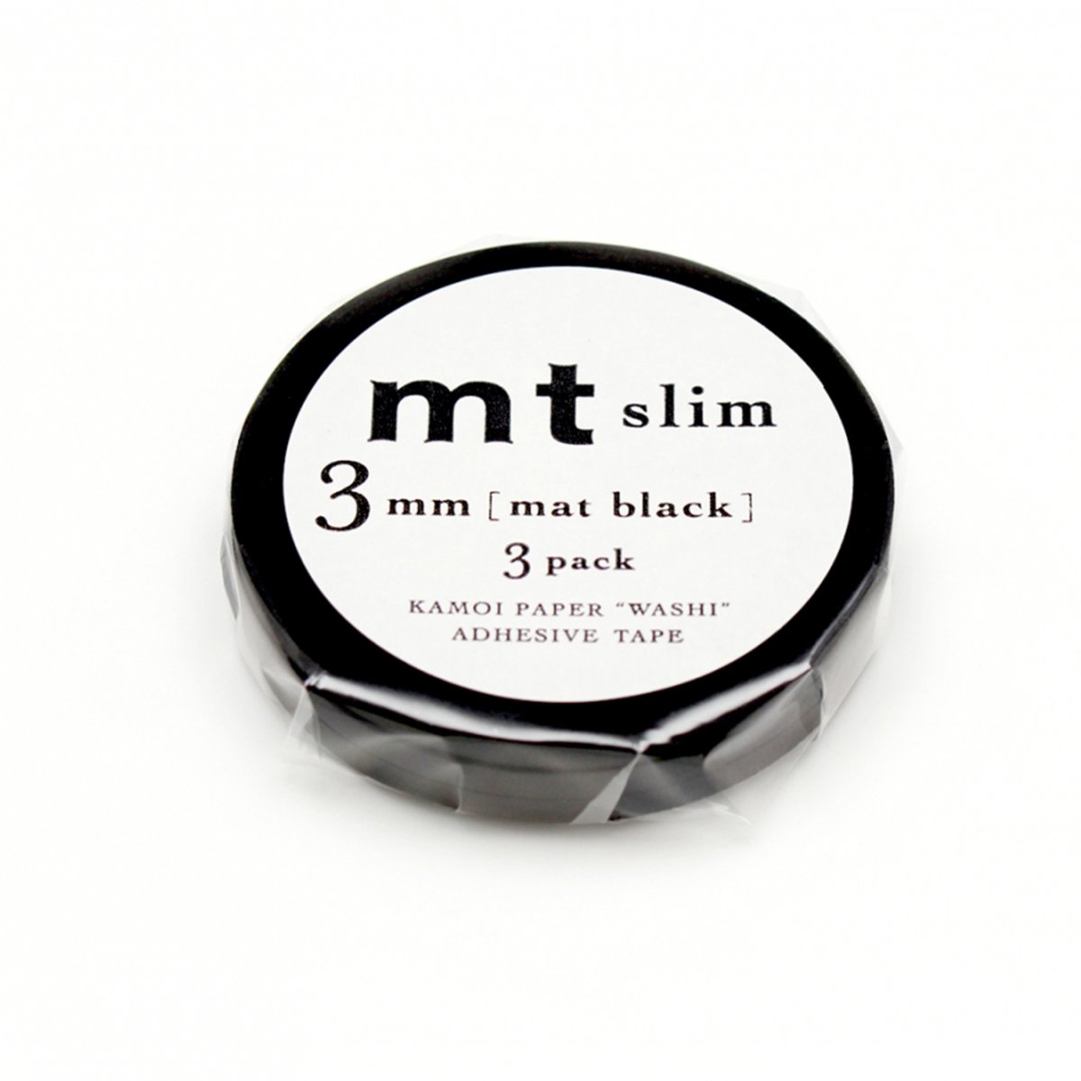 Adopte le lot de 3 rubans adhésifs slim ou Masking tape unis noirs de chez mt pour « pimper » tes fournitures scolaires et tes notes de cours!