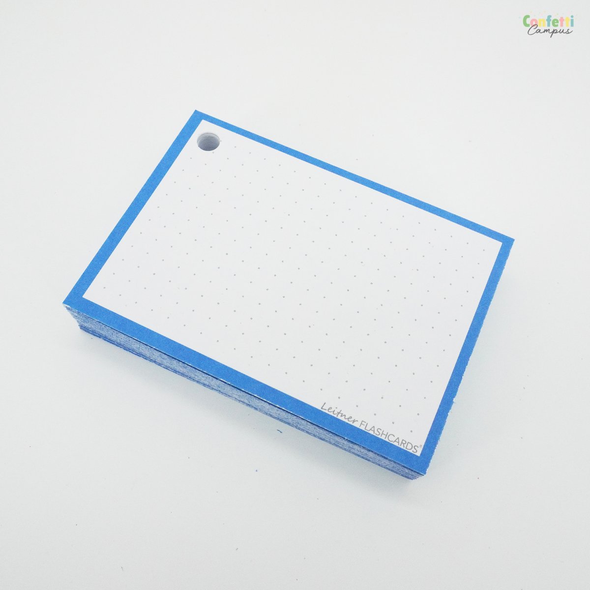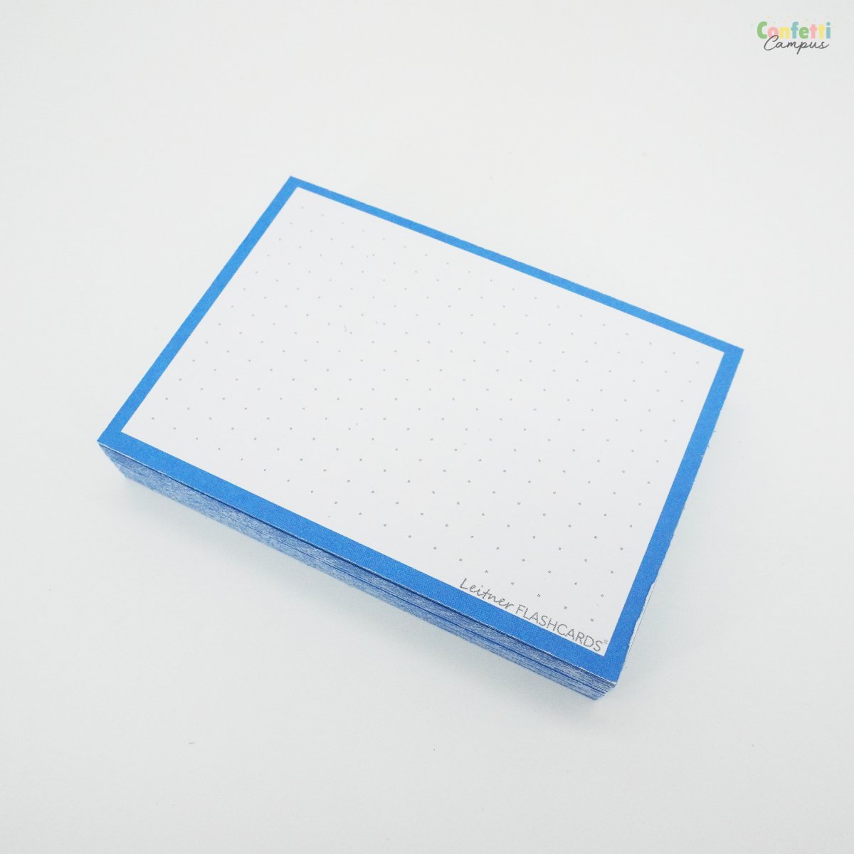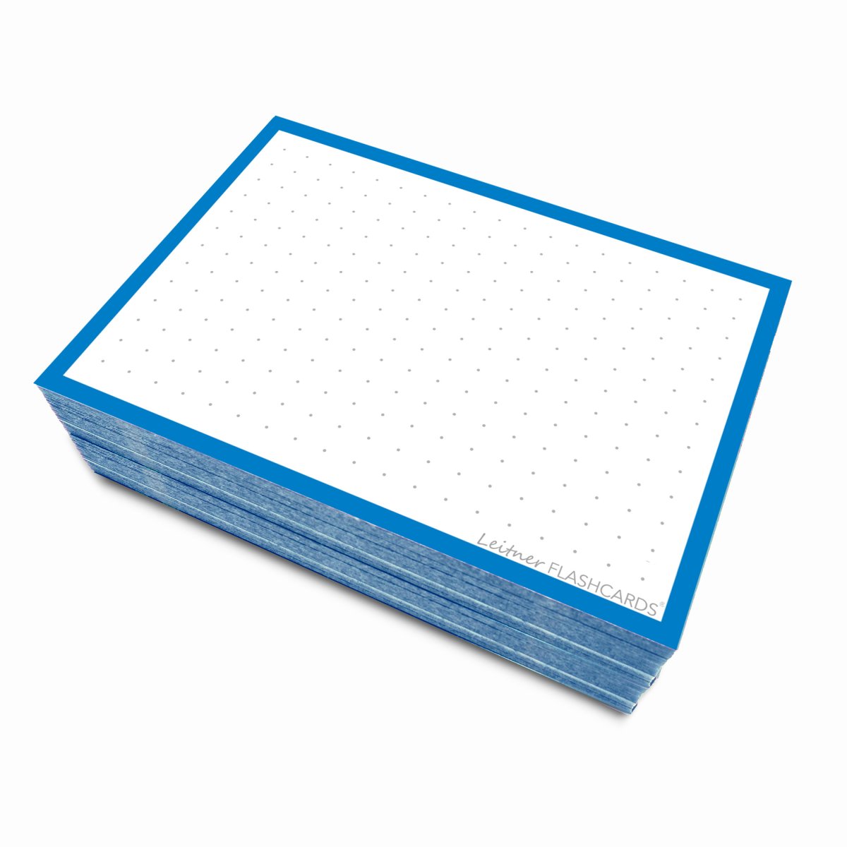 Pack de 50 Flashcards Leitner® ou cartes mémoire, à points, au format A7. Bordure bleue saphir.