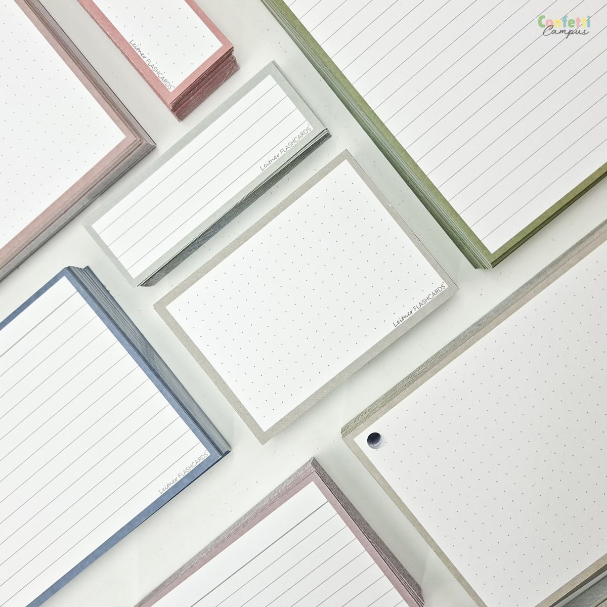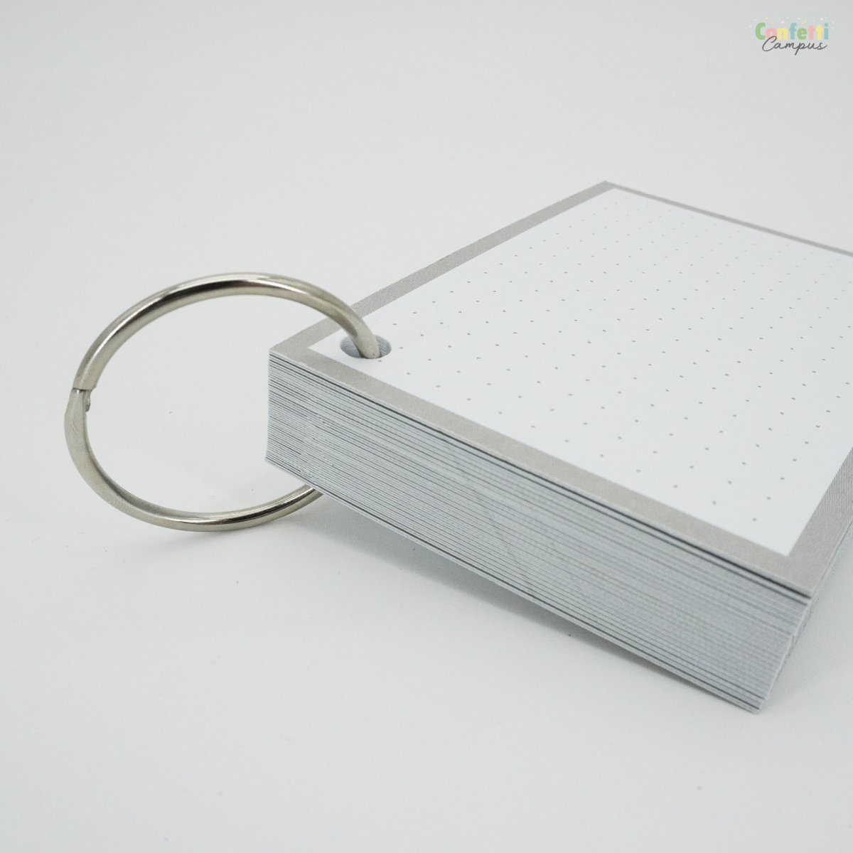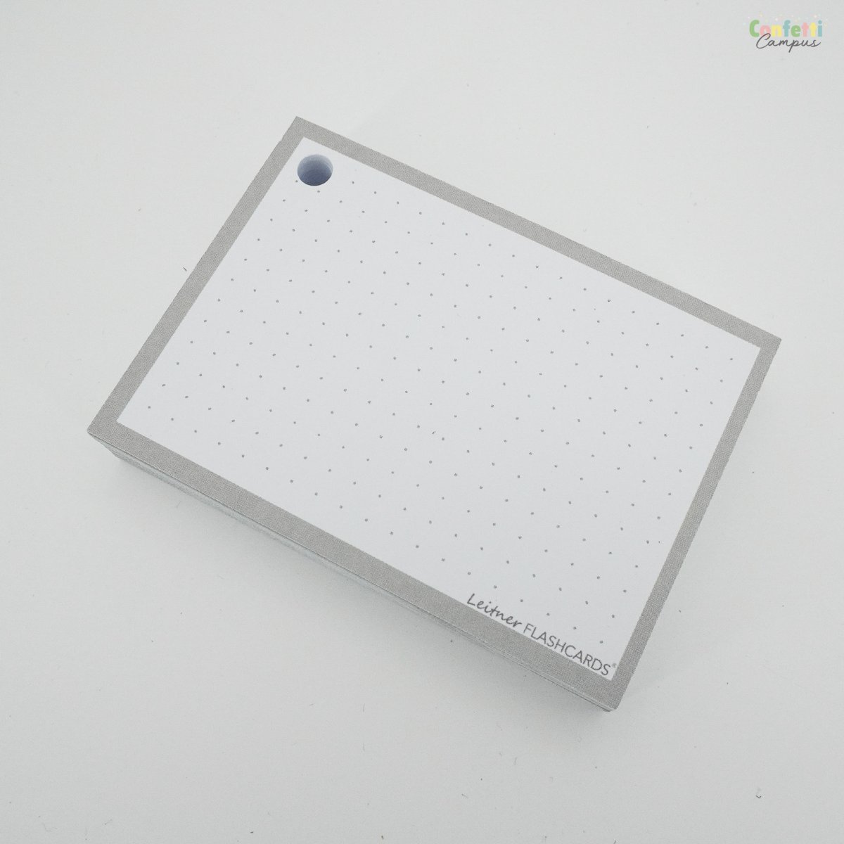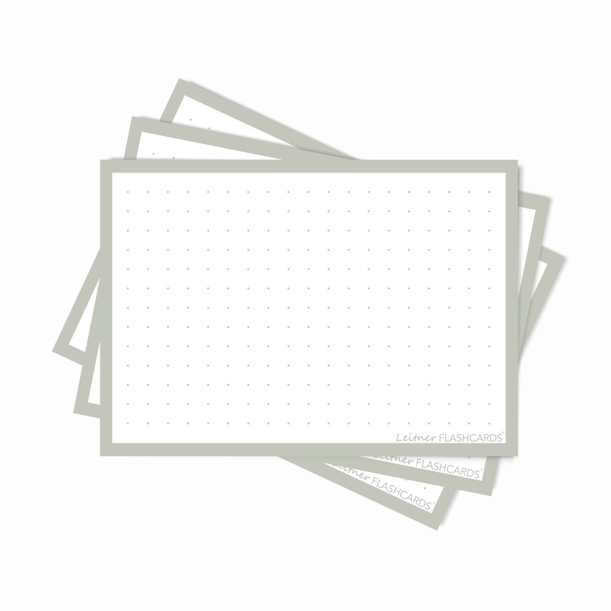Pack de 50 Flashcards Leitner® ou cartes mémoire, à points, au format A7. Bordure gris cendre.
