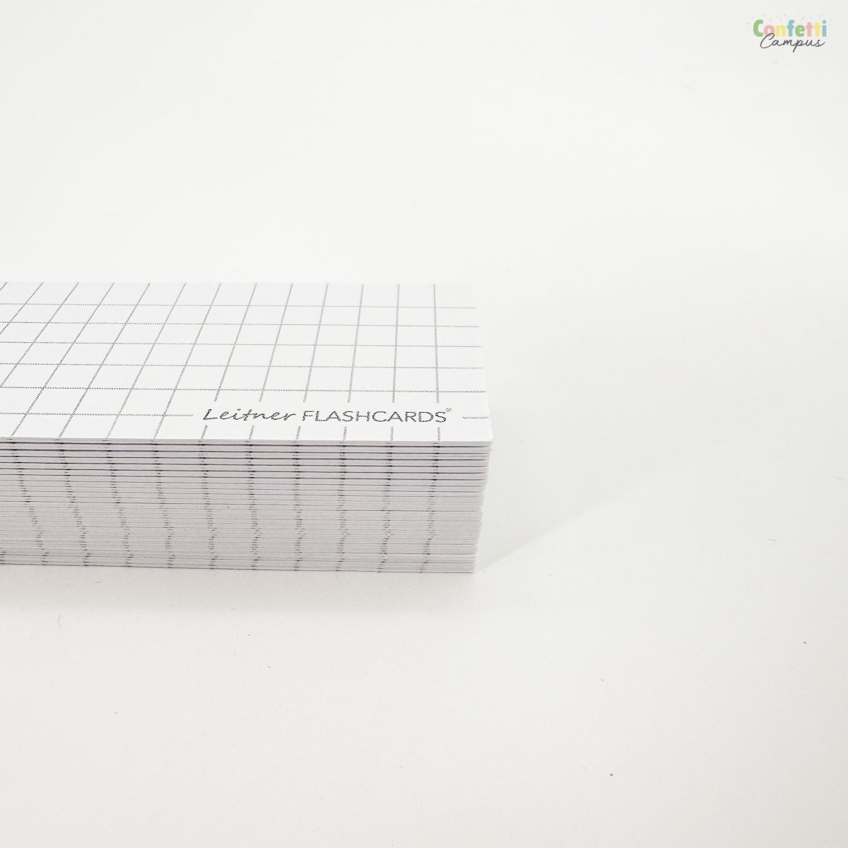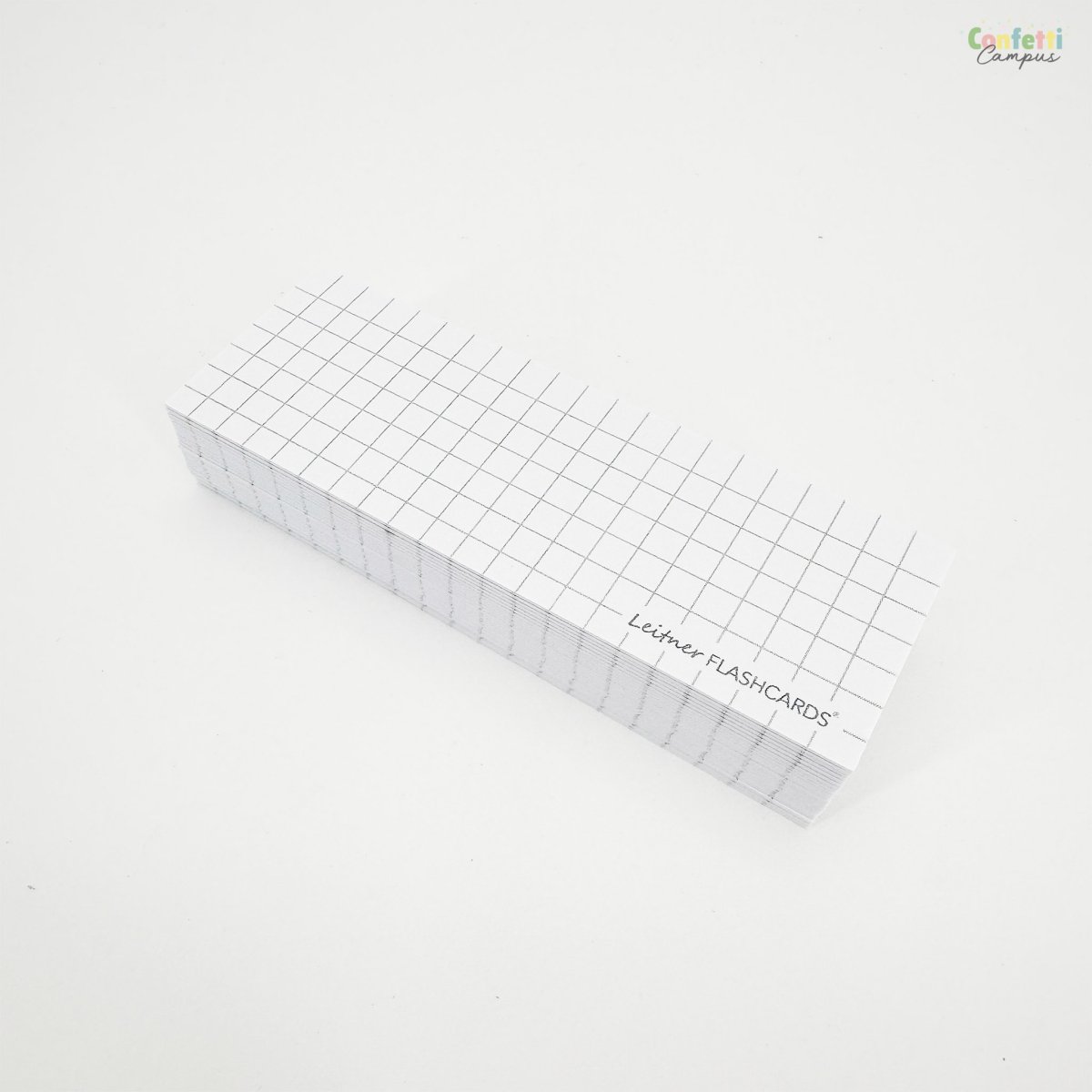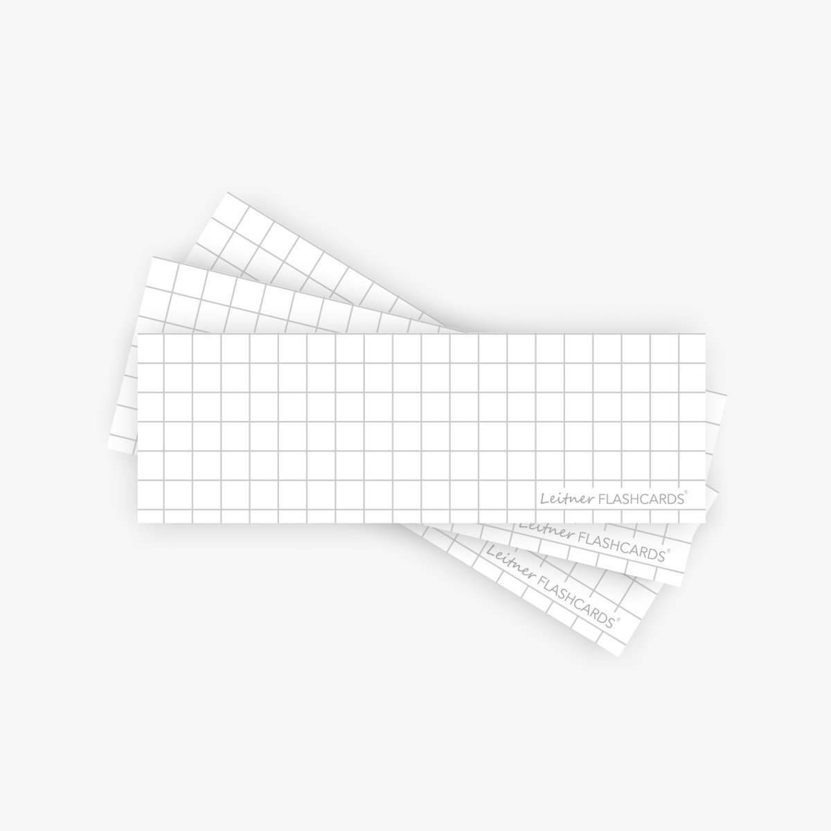 Pack de 50 Flashcards Leitner® Vocabulaire ou cartes de mots, à petits carreaux 5x5mm, petit format 3,5×10,5cm.