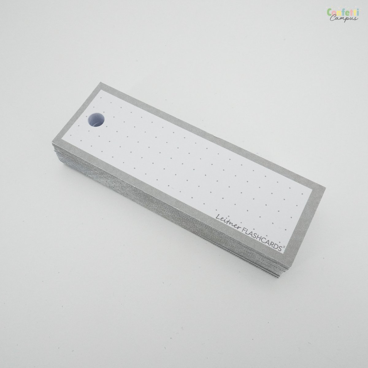 Pack de 50 Flashcards Leitner® Vocabulaire ou cartes de mots, à points, petit format 3,5×10,5cm. Bordure gris cendre.