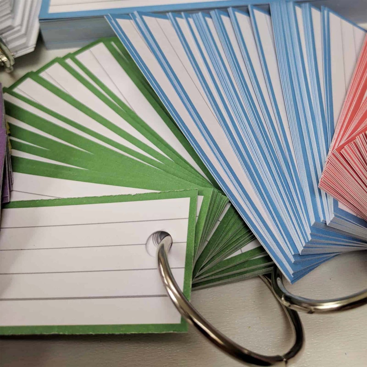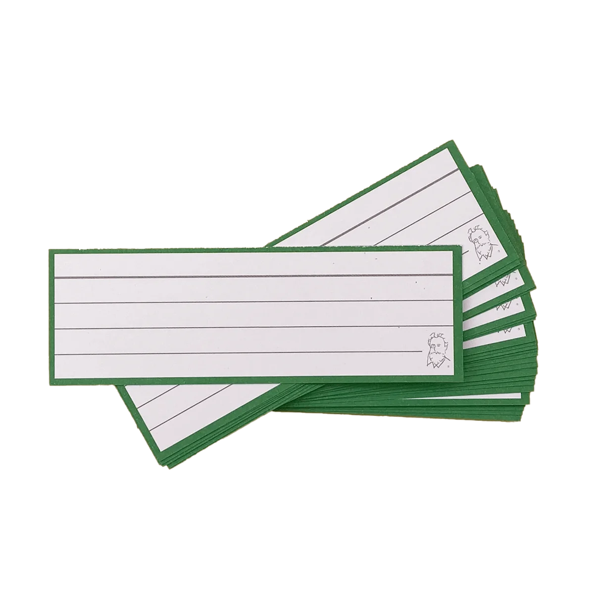 Flashcards Leitner ® lignées en demi-format, également appelées cartes de mots ou Vocabulaire. Bordure verte.