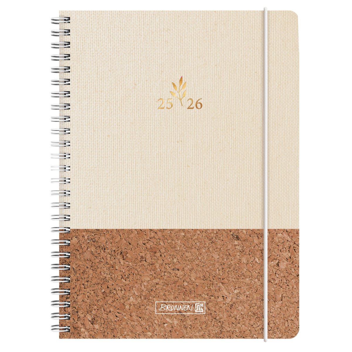 Agenda hebdomadaire ou semainier 2025-2026 Naturality de Brunnen. 2 pages = 1 semaine. Valide de début juillet 2025 à fin décembre 2026. Format A5 148 x 210 mm. Reliure intégrale ou double spirale. 208 pages multiligues, français inclus. Couleur tissu beige et liège brun.