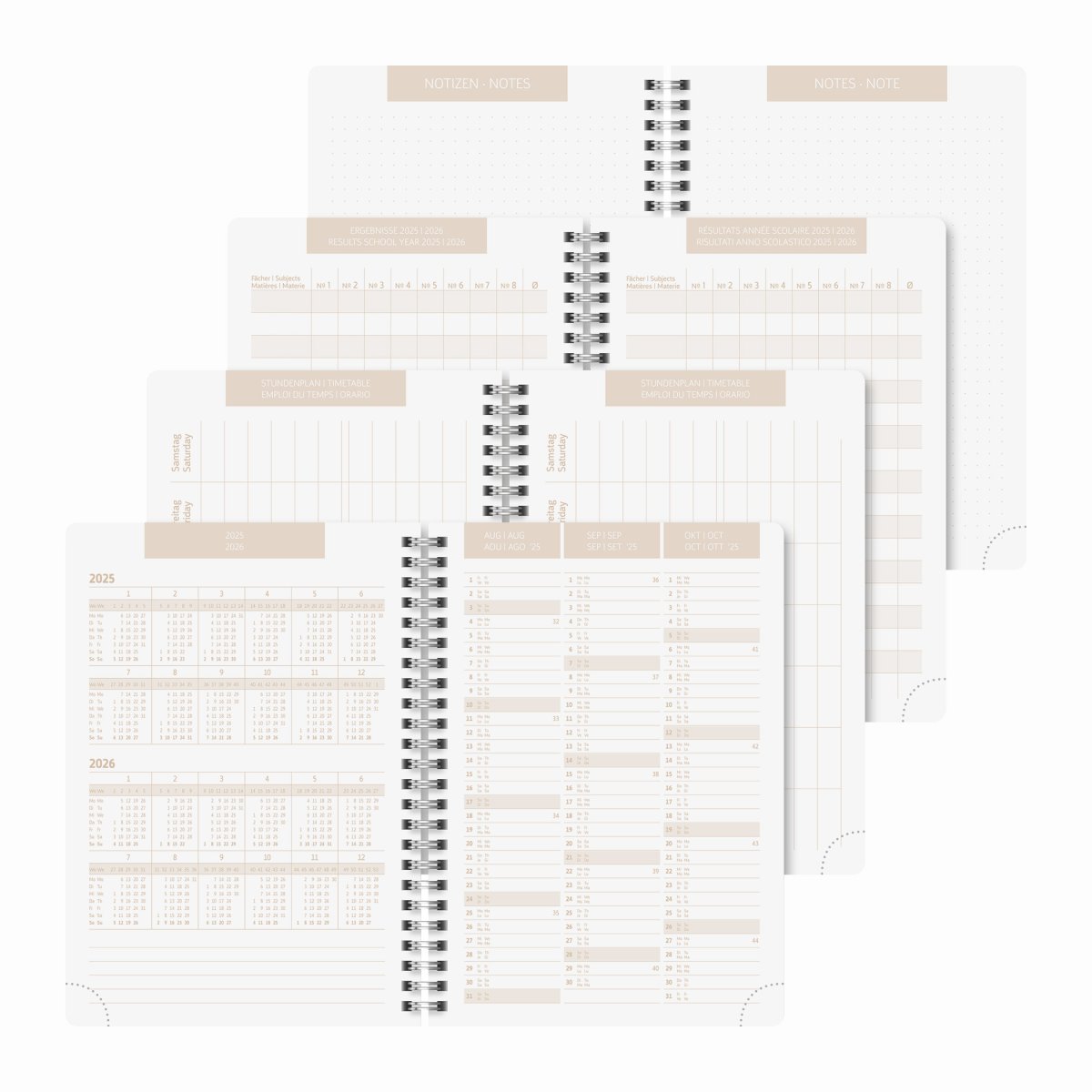 - Organisation complète : Pages de notes, emploi du temps, relevés de notes et carnet d’adresses – tout est prévu pour ne rien oublier.