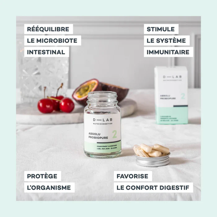 En parallèle, elle renforce le microbiote et l’immunité grâce aux probiotiques (Lactobacillus acidophilus, Bifidobacterium bifidum) et à la vitamine C, qui rééquilibrent la flore intestinale et soutiennent les défenses naturelles de l’organisme.
