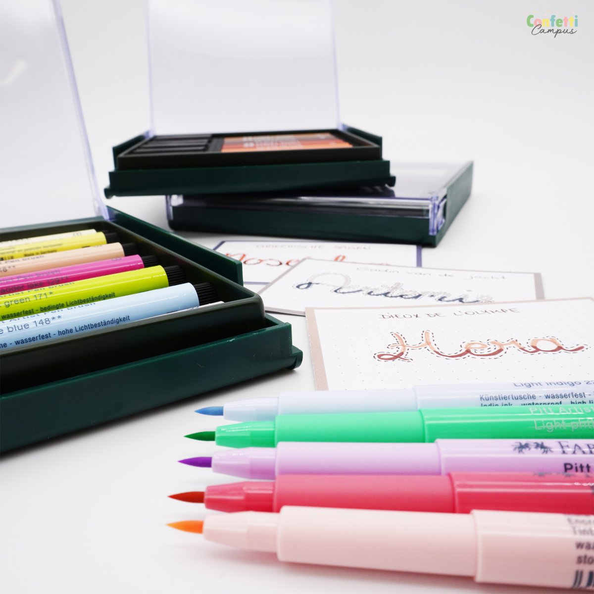 FABER CASTELL PITT ARTIST Pen Brush Feutre avec pointe pinceau 127 Pink carmine ou Rose carmin Pour les adeptes de lettering et brush lettering mais aussi de dessin au sens large: Le dessin à l’encre de Chine a une très longue tradition artistique. Son pouvoir d’expression, sa résistance à la lumière ainsi que la possibilité qu’il offre de combiner différentes techniques de dessin séduisent depuis toujours artistes et graphistes. Faber-Castell a réuni tous les avantages de l’encre de Chine dans un feutre moderne et facile à utiliser : le Pitt Artist Pen. L’encre de Chine pigmentée avec une forte résistance à la lumière est idéale pour la réalisation d’esquisses, de dessins, de croquis, de dessins de mode et d’illustrations. Il est possible de tracer des lignes d’épaisseurs différentes avec la pointe flexible du pinceau Pitt Artist Pen Brush. L’angle d’inclinaison et la pression exercée sur la pointe déterminent l’aspect du trait. En déplaçant le stylo latéralement le long du papier tout en exerçant une forte pression sur la pointe, tu traceras une ligne large ; une pression légère te donnera un trait fin. Une pression, de forte à faible, permettra une jolie transition de type plein et délié. En tamponnant la pointe du pinceau sur le papier, tu obtiendras des formes de gouttes. Le feutre Pen Brush de Faber Castell peut être utilisé sur une grande variété de surfaces: le papier biensur, que ce soit du papier aquarelle, à dessin, kraft brun, washi tape, calque etc… mais aussi sur de la toile, du bois et du carton après une sous-couche. Le Pen Brush PITT ARTIST existe en plusieurs couleurs: Leurs encres sont mélangeables et superposables: tu peux ainsi éclaircir l’encre de ton Pen Brush rose en applicant par dessus l’encre du Pen brush blanc. Ses atouts?