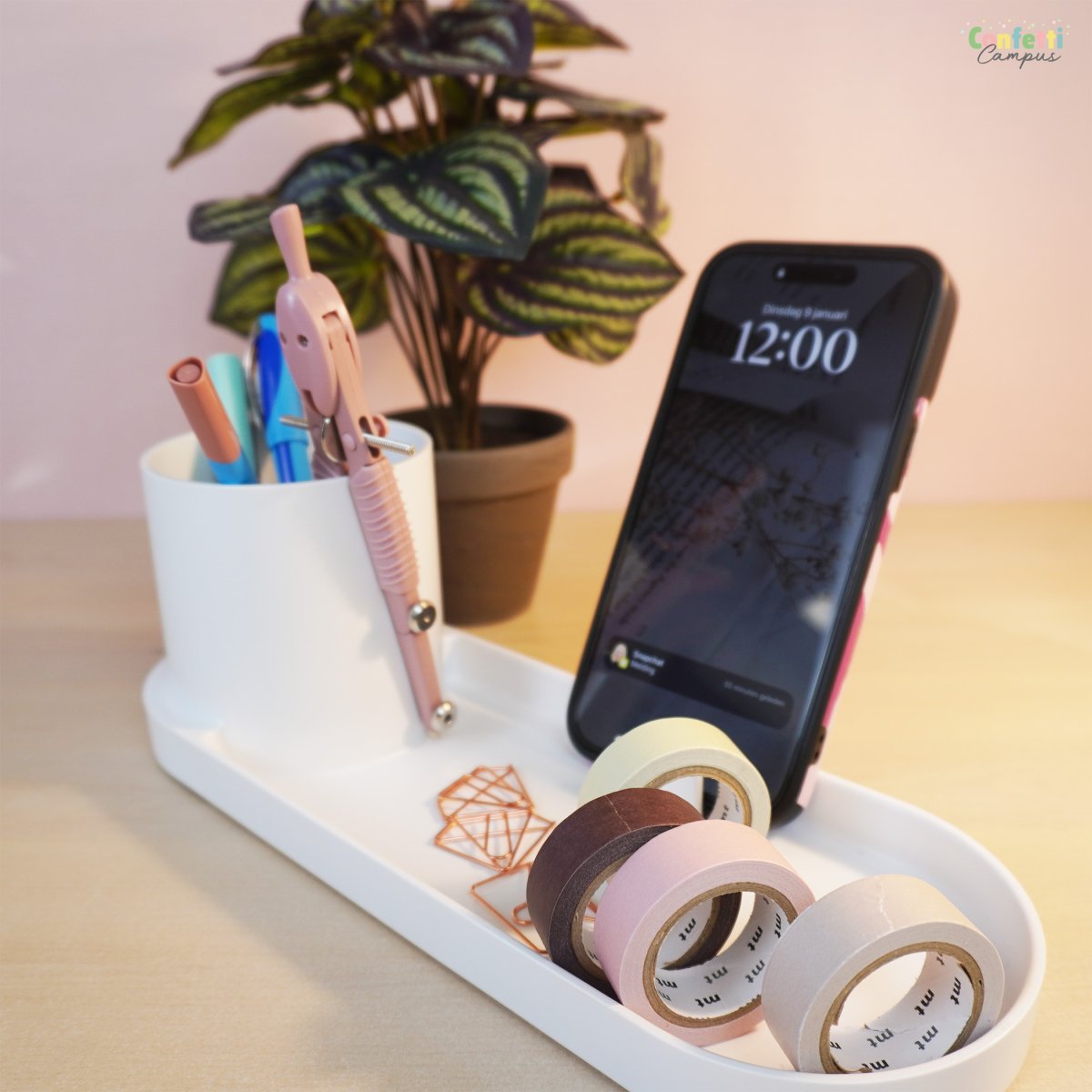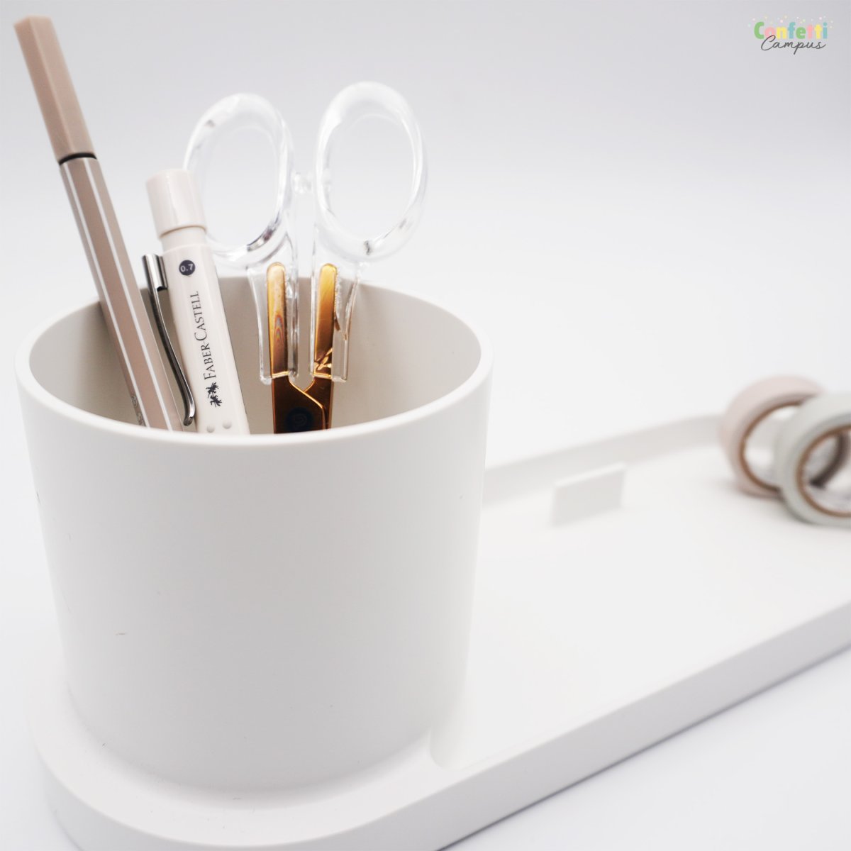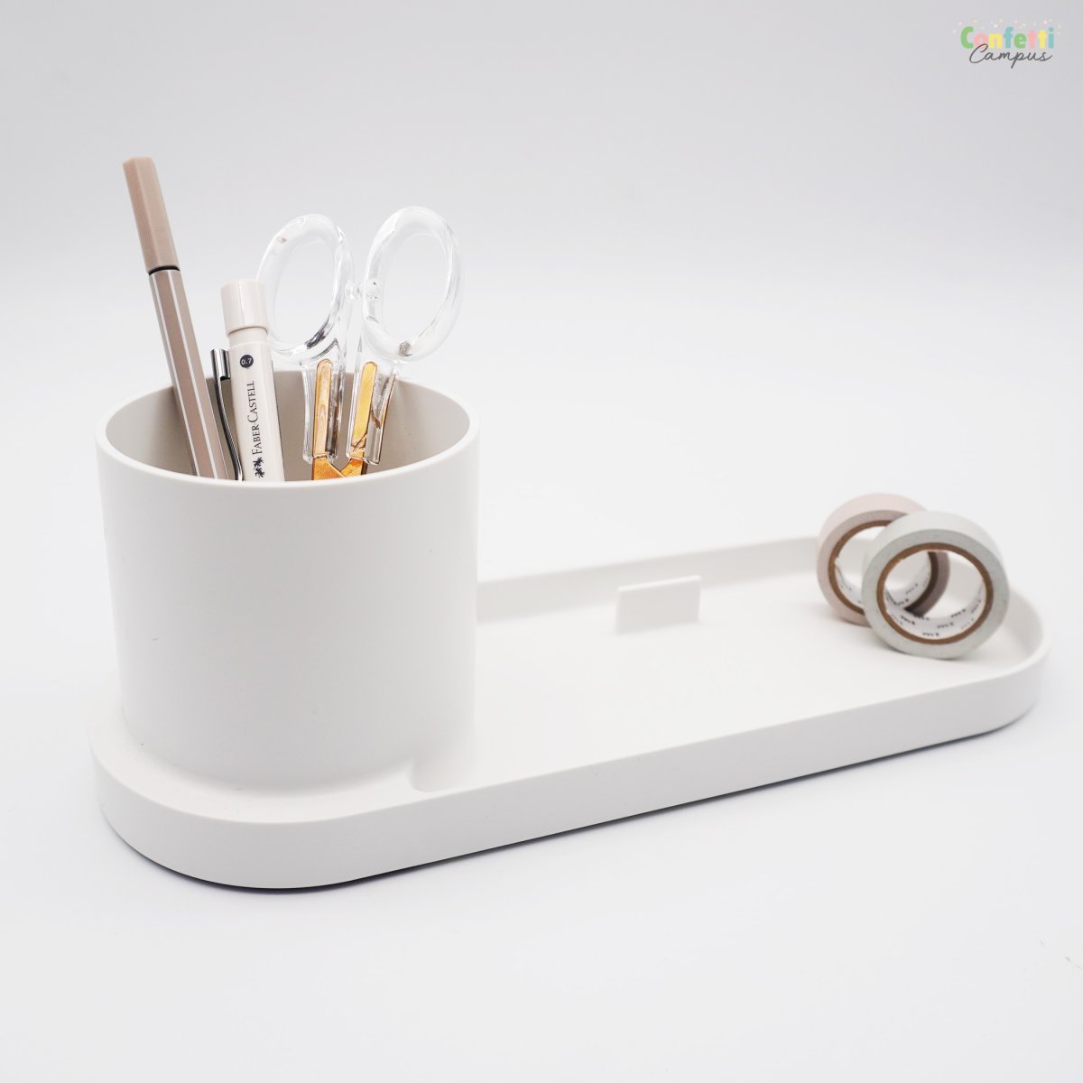 Un design épuré, minimaliste, fabriqué à partir de plastique 100 % recyclé : l’organiseur de bureau multifonctionnel de chez Forma apportera du style à ton bureau. Présenté sous forme de plateau, tu peux y ranger à plat tes petites fournitures (trombones, notes repositionnables, etc..). Cet organiseur de bureau dispose également d’un porte-stylos cylindrique et d’un support de téléphone portable, pour maintenir ton smartphone en position verticale.