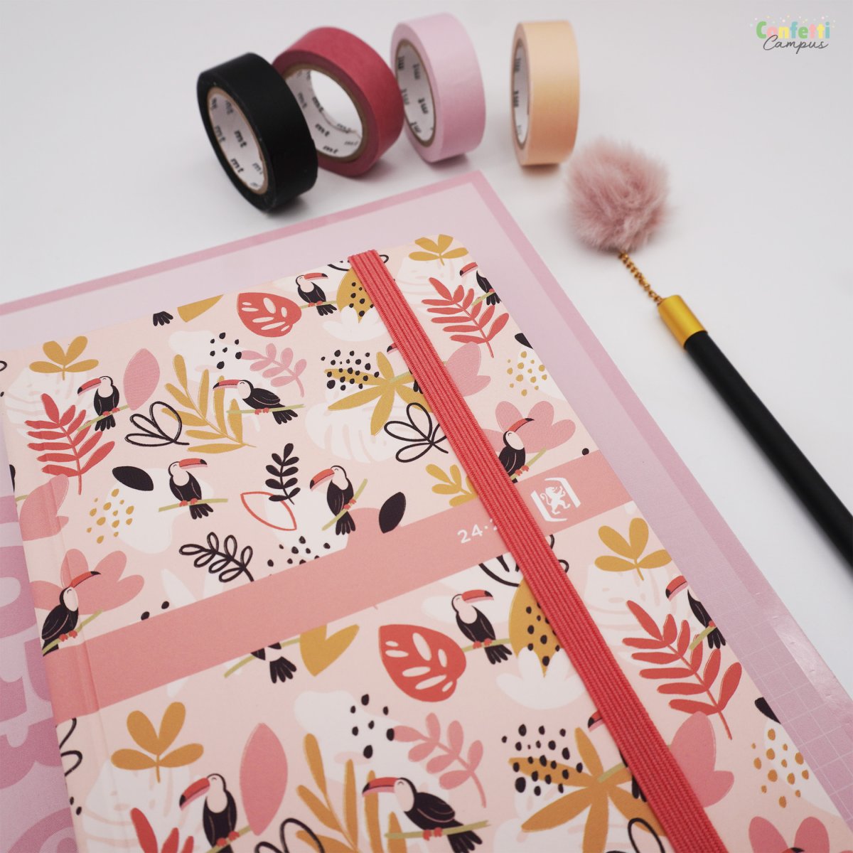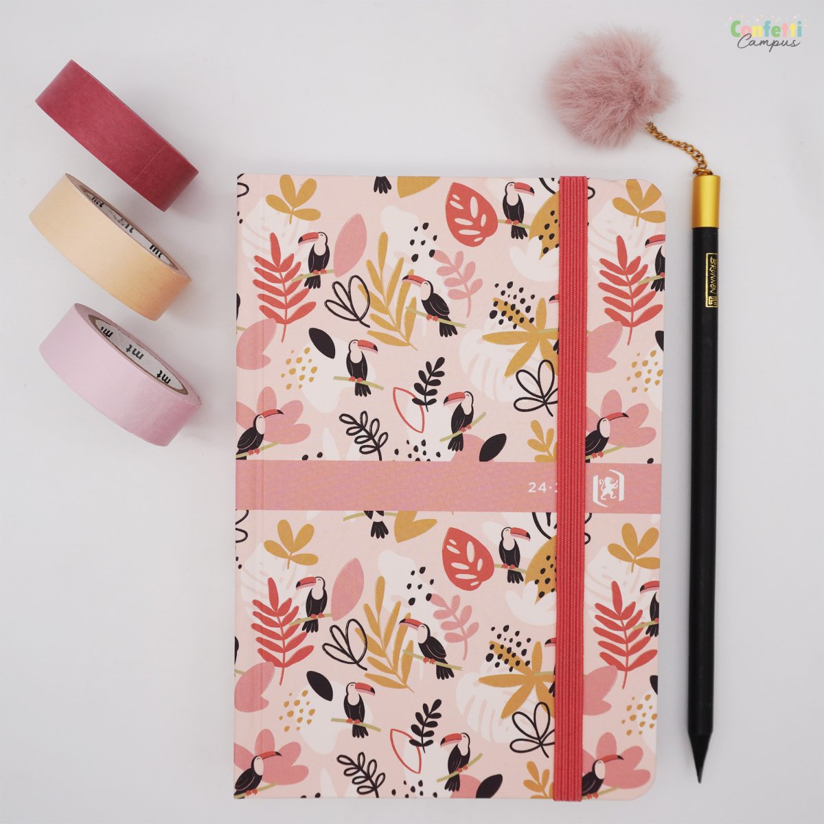 Cet agenda reprend les illustrations de l’artiste Camille J. qui nous invite dans son univers végétal poétique, rassurant et chaleureux à travers une palette de couleurs harmonieuses. Des motifs qui évoquent tantôt les plages exotiques, avec de délicats palmiers, feuilles de palme et petits crabes, ou tantôt une jungle poétique, rassurante, avec ses petits toucans protecteurs. Les gardes avec rabats « emploi du temps » te permettent de gérer 2 emplois du temps différents (semaine A / semaine B) et de garder ton planning à portée de main. La grille Oxford Nude beige de 352 pages au design très épuré et élégant contient des pages d’informations pratiques et des cartes en couleurs ainsi que 32 pages de notes pour t’exprimer librement au cœur de ton agenda. Couverture semi-rigide avec élastique de fermeture pour garder tes petits documents en sécurité. Compatible avec l’application gratuite SCRIBZEE®.