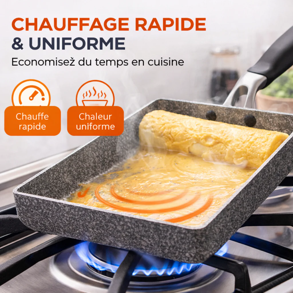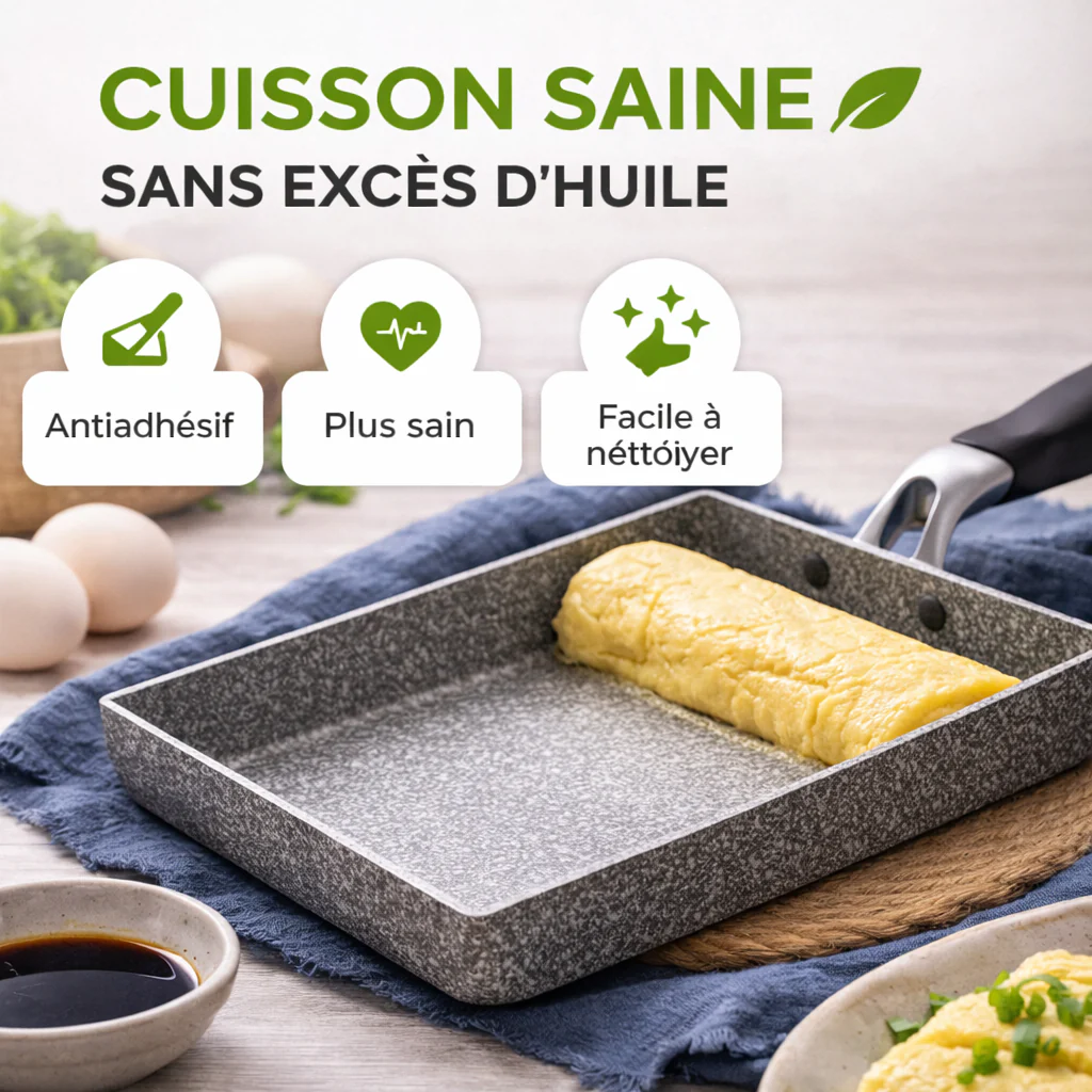 Découvrez la poêle japonaise rectangulaire en pierre médicale, l’ustensile de cuisine idéal pour préparer des plats savoureux tout en préservant votre santé. Fabriquée à partir de matériaux de haute qualité, cette poêle vous permet de cuire vos aliments sans utiliser d’huiles superflues, ce qui la rend parfaite pour préparer de délicieuses omelettes et bien d’autres recettes. Sa forme rectangulaire optimise l’espace de cuisson et vous aide à réaliser une cuisson uniforme, tout en apportant une touche d’authenticité à votre cuisine.