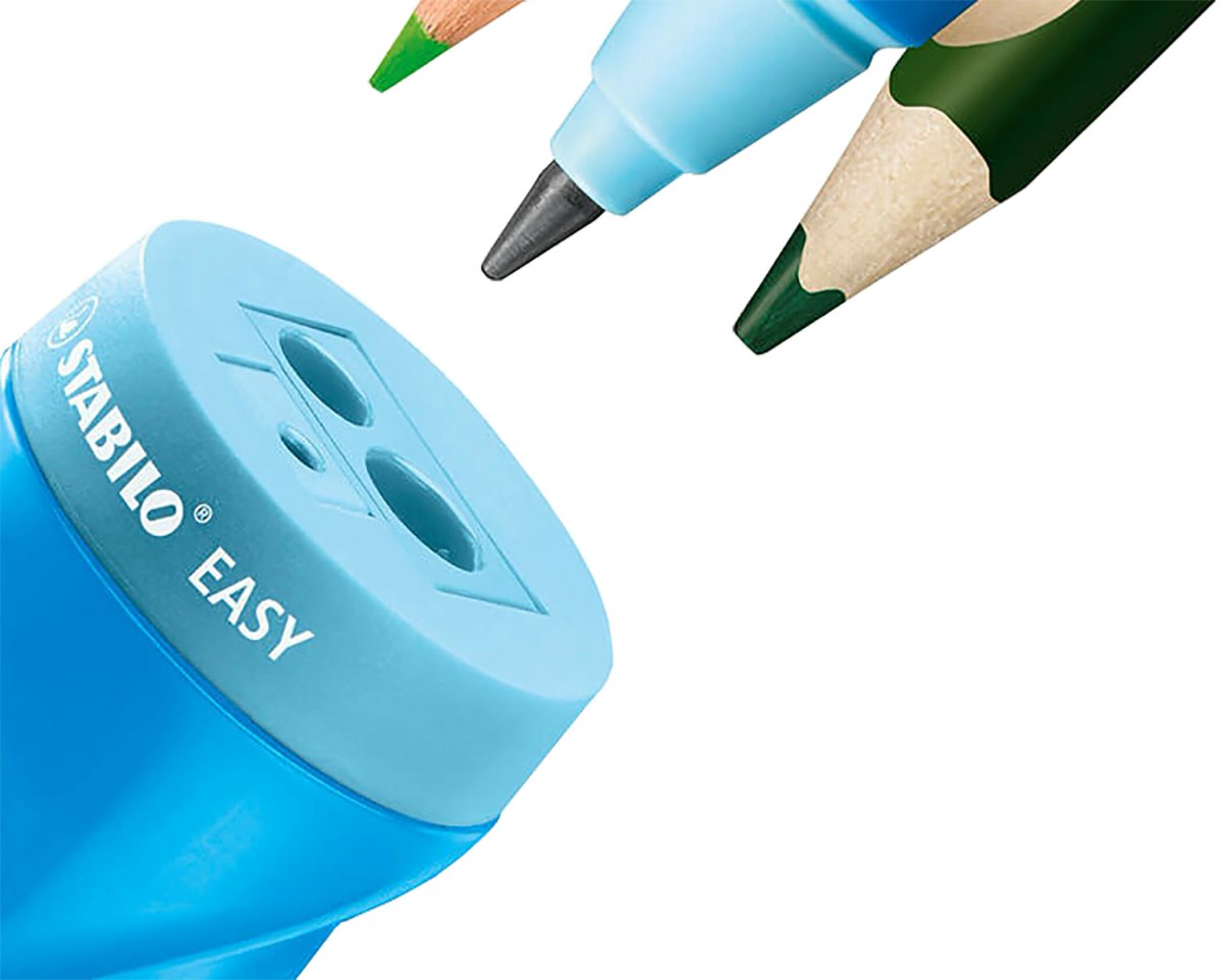 Ergonomique et polyvalent, le taille-crayon EASYsharpener a tout pour plaire. Disponible en version gaucher et droitier, EASYsharpener est un taille-crayon ergonomique avec réservoir et couvercle. Il peut tailler trois diamètres de mines différentes : idéal pour EASYcolors, EASYgraph et EASYergo 3.15 et pour tous les crayons à corps fins. Son style haut en couleur ne passera jamais inaperçu.